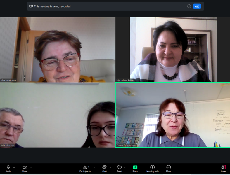 09.03.2026 на платформі "Зум" в рамках обговорення проєкту ОП "Українська мова і література, англійська мова" другого (магістерського) рівня освіти на 2026/2027 н.р. відбулася нарада гаранта Баган М.П. зі стейкголдерами – учителем Білоцерківського академічного ліцею «Мала академія наук» В.Ф. Тереховим, його колегами, учнями й завідувачкою методичного відділу КЗ КОР “Мала академія наук учнівської молоді”, координаторкою наукового відділення філології О.П. Григоренко. Стейкголдери схвально оцінили комплексну підготовку здобувачів освіти до роботи в закладах середньої оцінки, наявність різних видів практики й рекомендували ввести дисципліни для формування навичок роботи з обдарованною молоддю в ЗЗСО.